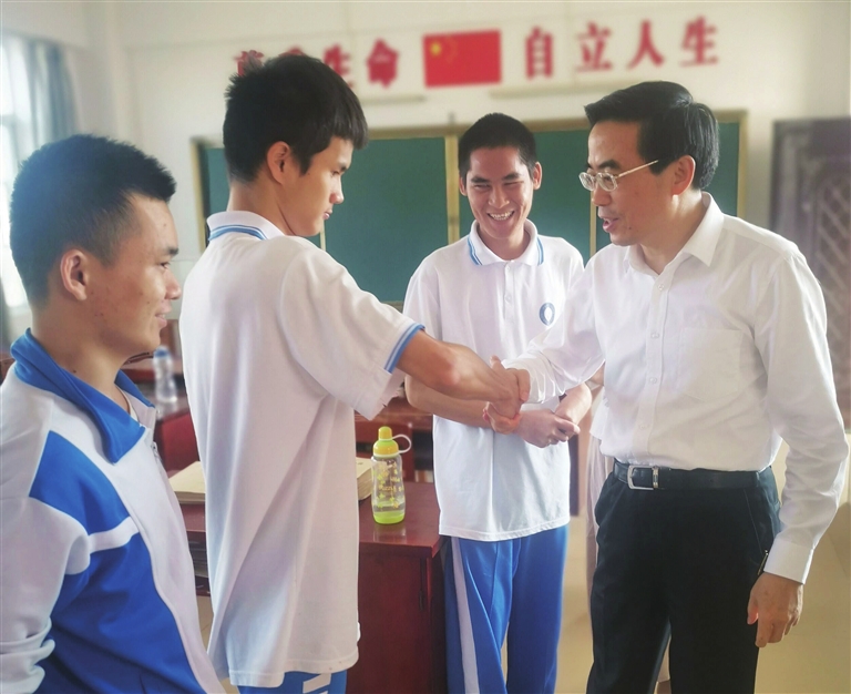 程凯还走访了澄迈县特殊教育学校,为特教学校的孩子们送上国际残疾人日的祝福。