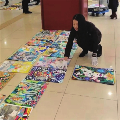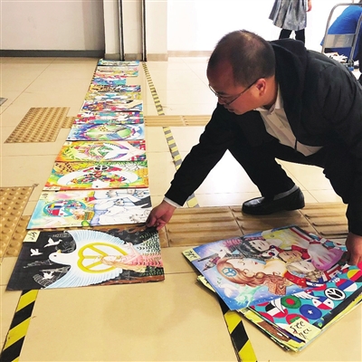 当天上午,来自全国14个展区及残障少儿的430幅以“善与和平”为主题的绘画作品通过初评。