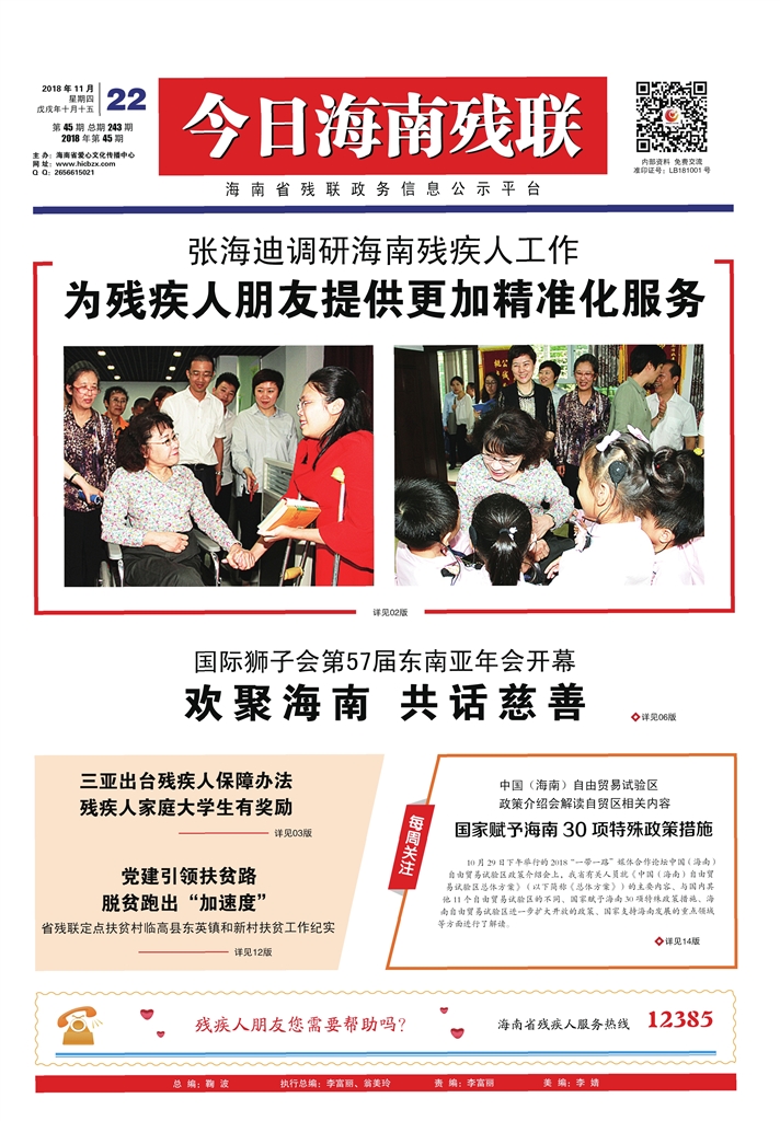 以《今日海南残联》报和《感恩》杂志为主阵地,依据舆情的实际,力求在版面、文稿、图片上贴近残疾人生产生活,弘扬残疾人事业新动向,全方位地营造扶残助残的社会氛围,提高省残联在助残公益领域的形象,成为宣传我省残疾人事业的最强音。