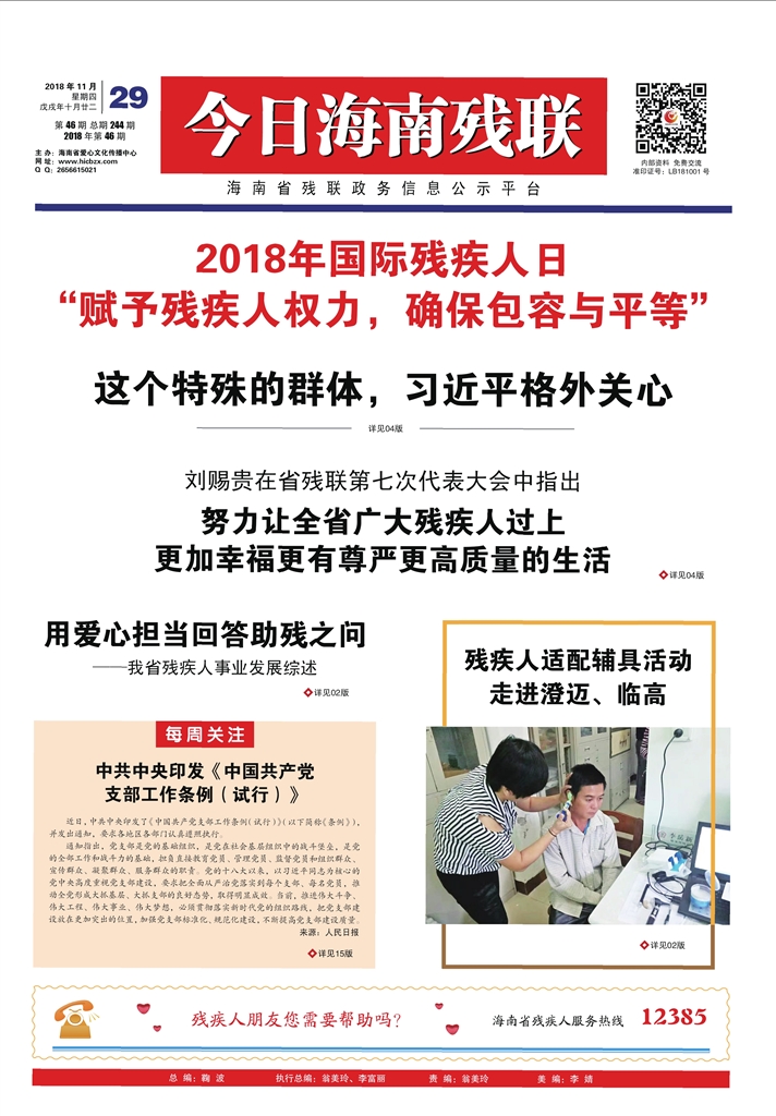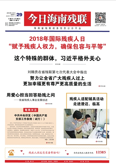 海南残联内部创办的《今日海南残联》报每周一期,每期编印16版。创办的《感恩》杂志每月一期,每期50页。发布的信息有国内外和省里相关残疾人事业的工作动态,特殊的舆情新闻,还开设专版和增加版面。投放的范围有中国残联各部门、各省市区残联、省内各级党委政府部门、省内残工委成员单位、省内各乡镇(街道办事处)和村委会(居委会)残疾人专职委员、部分需求的残疾人及省内(驻琼)媒体单位,通过多种形式的宣传残疾人事业,让广大残疾人朋友和残疾人工作者全方位获取有关残疾人工作的动态和助残信息。