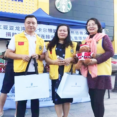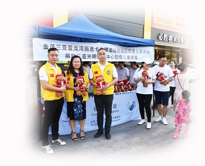 海南代表处2018-2019年度八分区主席张鹏飞,三沙服务队现任队长雷威龙,福爱手拉手现任队长李志玲,导师团导师高涵,及社会爱心人士共同参加此次活动,为三亚光明链接脑瘫儿童奉献一份爱心,此次义卖款项全部用在三亚光明链接脑瘫儿童的项目。