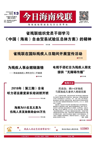 今日海南残联 头版 001 2018-12-131 2018年12月13日 星期四