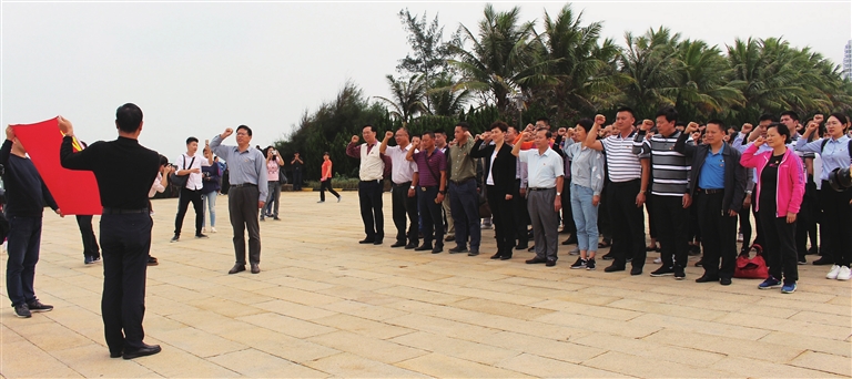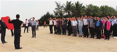 下午,省残联全体党员到临高角解放公园开展党日活动。在解放公园热血丰碑前,党员们面对庄严的党旗,举起了右手,进行重温入党誓词宣誓活动。