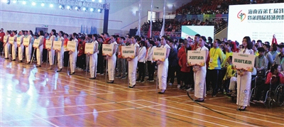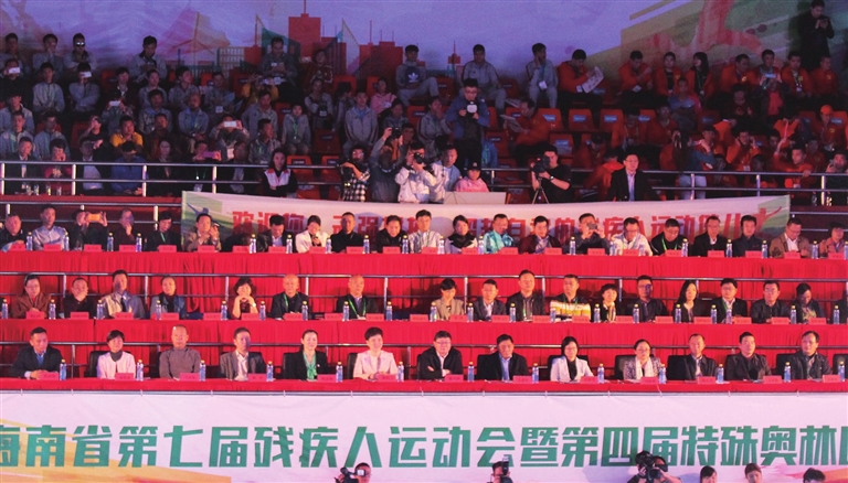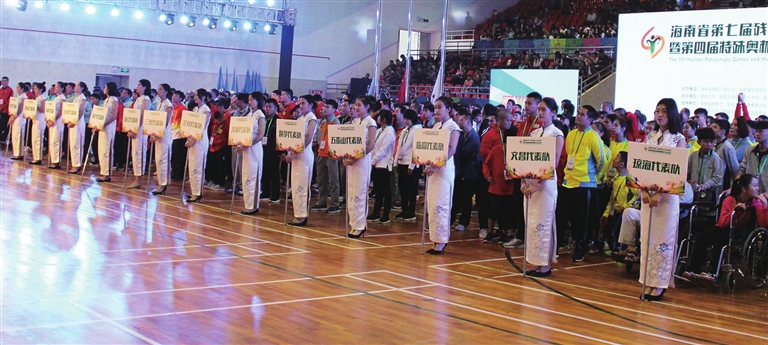 苻彩香在开幕辞中说,在庆祝改革开放40周年,全面深入贯彻习近平总书记“4·13”重要讲话,积极推进海南自由贸易实验区和中国特色自由贸易港建设的大好时期,省第七届残疾人运动会暨第四届特殊奥林匹克运动会开幕。残疾人体育运动是残疾人事业和全民体育运动的重要组成部分。近年来,在省委、省政府的高度重视和社会各界的大力支持下,我省残疾人事业快速向前发展,残疾人状况有了很大改善,残疾人体育工作和残疾人体育队伍建设不断加强,残疾人群众性体育活动日趋活跃,残疾人运动员在国内外赛场屡创佳绩,为海南赢得了荣誉。四年一届的省残运会,是属于全省50多万残疾人朋友的体育盛会,是展示自尊自信自强自立精神的魅力舞台,是推动残疾人事业发展的重要平台。预祝全体运动员顽强拼搏、奋勇争先、赛出风格、赛出水平,本届残运会和特奥会圆满成功。